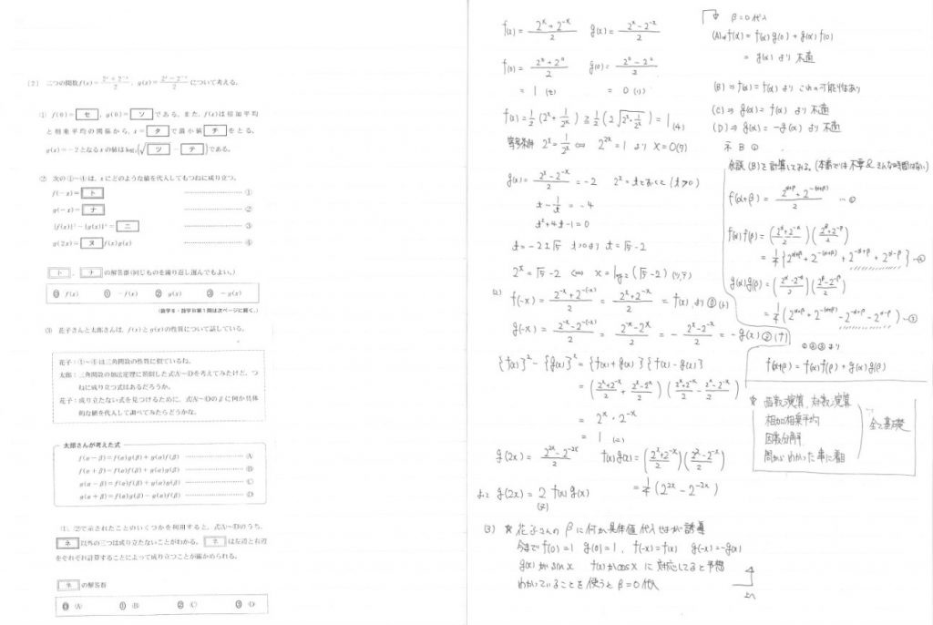 これは21年度入試の共通テスト数学ⅡBの一部を解いたものになります。