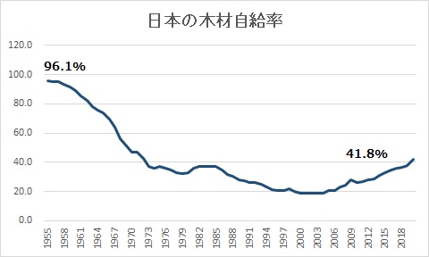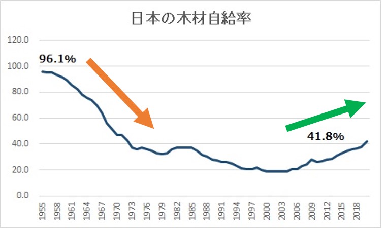 このような理由で、日本の木材自給率が急降下したという背景があります。