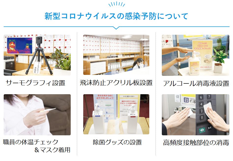 ▼四谷学院「新型コロナウイルスの感染予防について」https://www.yotsuyagakuin.com/environment/hygiene.html