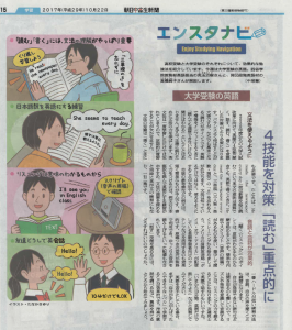 先日「朝日中高生新聞」から英語学習についての取材を四谷学院が受けました。