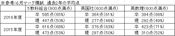 6月のベネッセ模試における現役生と浪人生の平均点の差です。