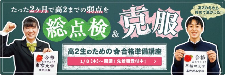 この講座に参加することで、高3からの本格的な入試対策に弾みがつくでしょう。