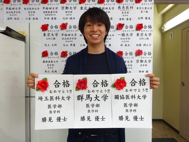 彼は、大学受験予備校「四谷学院」で1年間学び、第一志望の群馬大学医学部、そして埼玉医科大学医学部、獨協医科大学医学部の合格を手にしました。彼の塾選びと合格までの道のりについて詳しくお話を聞きました。