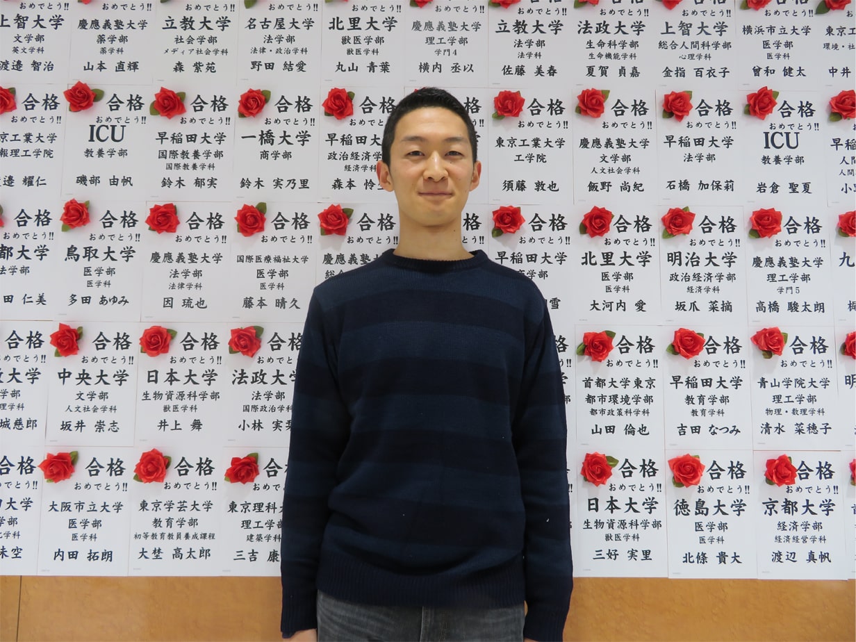 さんは現役受験は失敗。そのとき通っていた大手予備校を辞めて予備校探しをしていたとき、インターネットの口コミで「四谷学院はアットホームだから質問しやすい」という書き込みを見て入学。次の年に横浜市立大医学部に合格しました。