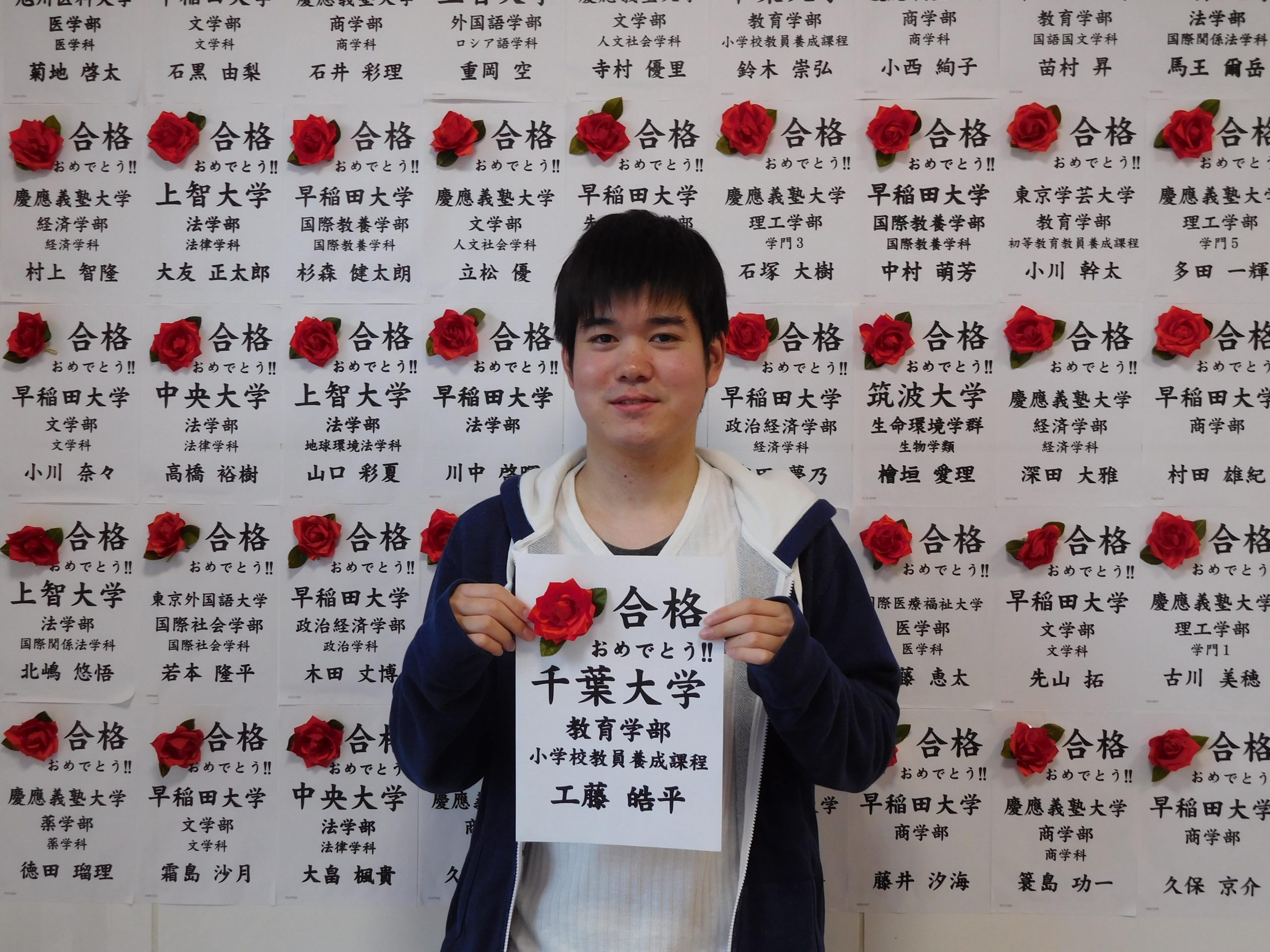 ブランクで高校時代の勉強が抜けている状態での再受験でしたが、1年で英語6→8割、生物5→9割、総合点は100点以上アップし、みごと千葉大に合格しました。
