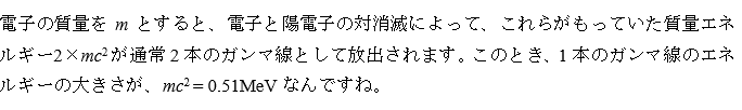ポイントとなるのは、検出されたガンマ線のエネルギーが0.51MeV(メガ電子ボルト)であるところです。