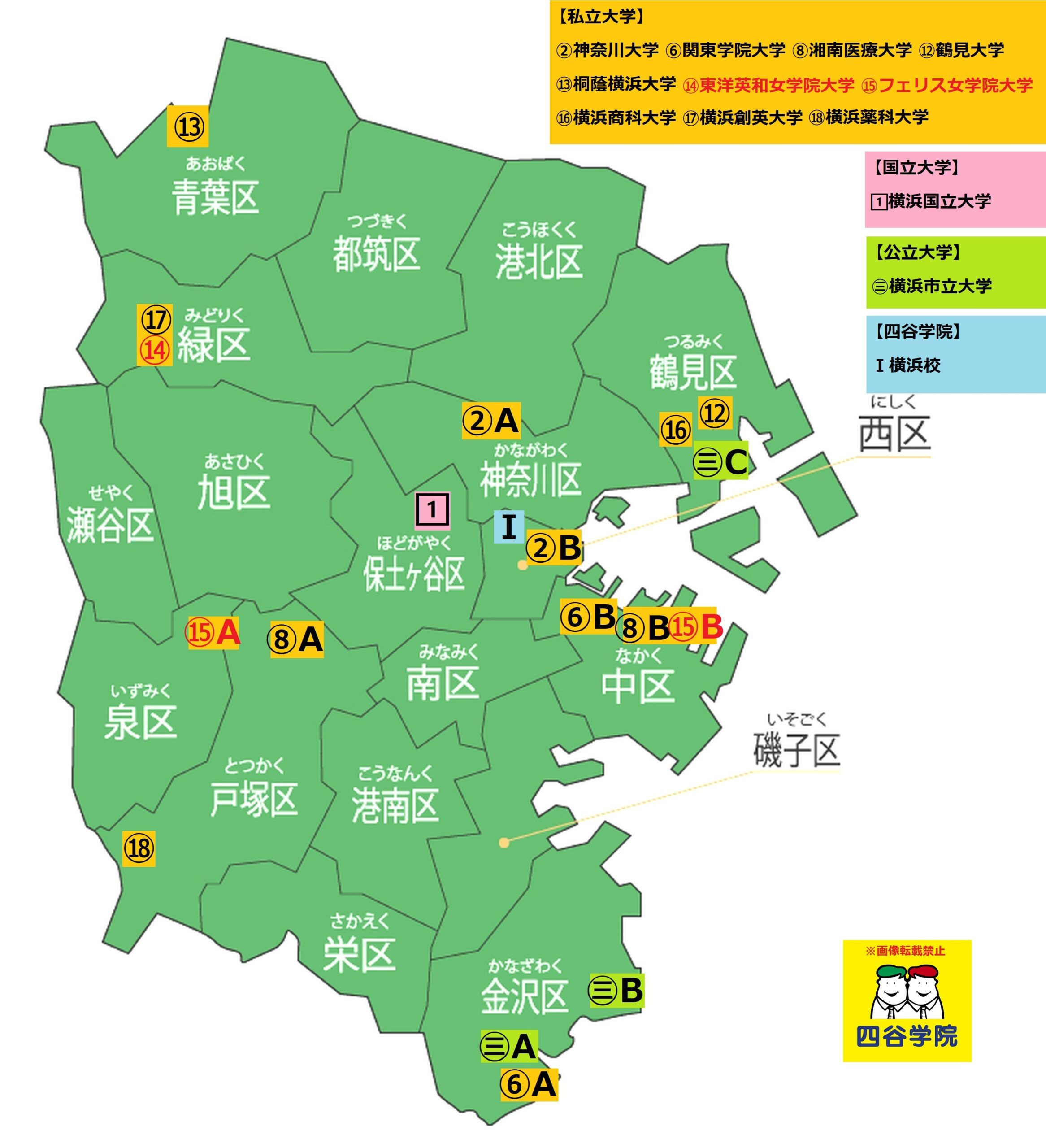 ほかにも神奈川県内には、いくつかの私立大学があります。