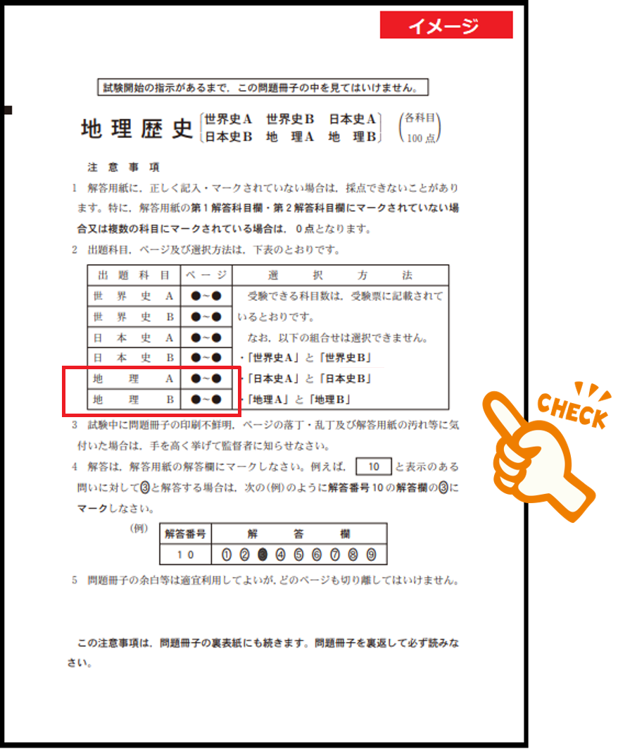 まず、気を付けて欲しいのは、地理Aか地理Bかを間違えないことです。地理Bを受験予定の方が多いと思います。模試では、「地理A」がそもそもないので、「AかBか」を気にする必要はなかったかもしれませんね。本番ではうっかり「地理A」を解いてしまわないように気を付けましょう。