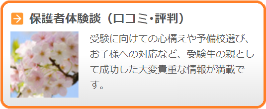お子様の受験勉強を支えた保護者様からの口コミ・評判をご紹介します。貴重な情報が満載ですので、ぜひご覧ください。