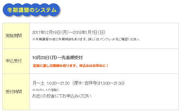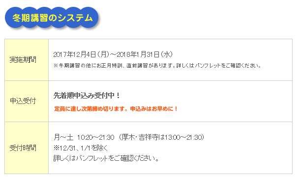 冬期講習の特設ページ → 受験生「収穫の冬期講習」