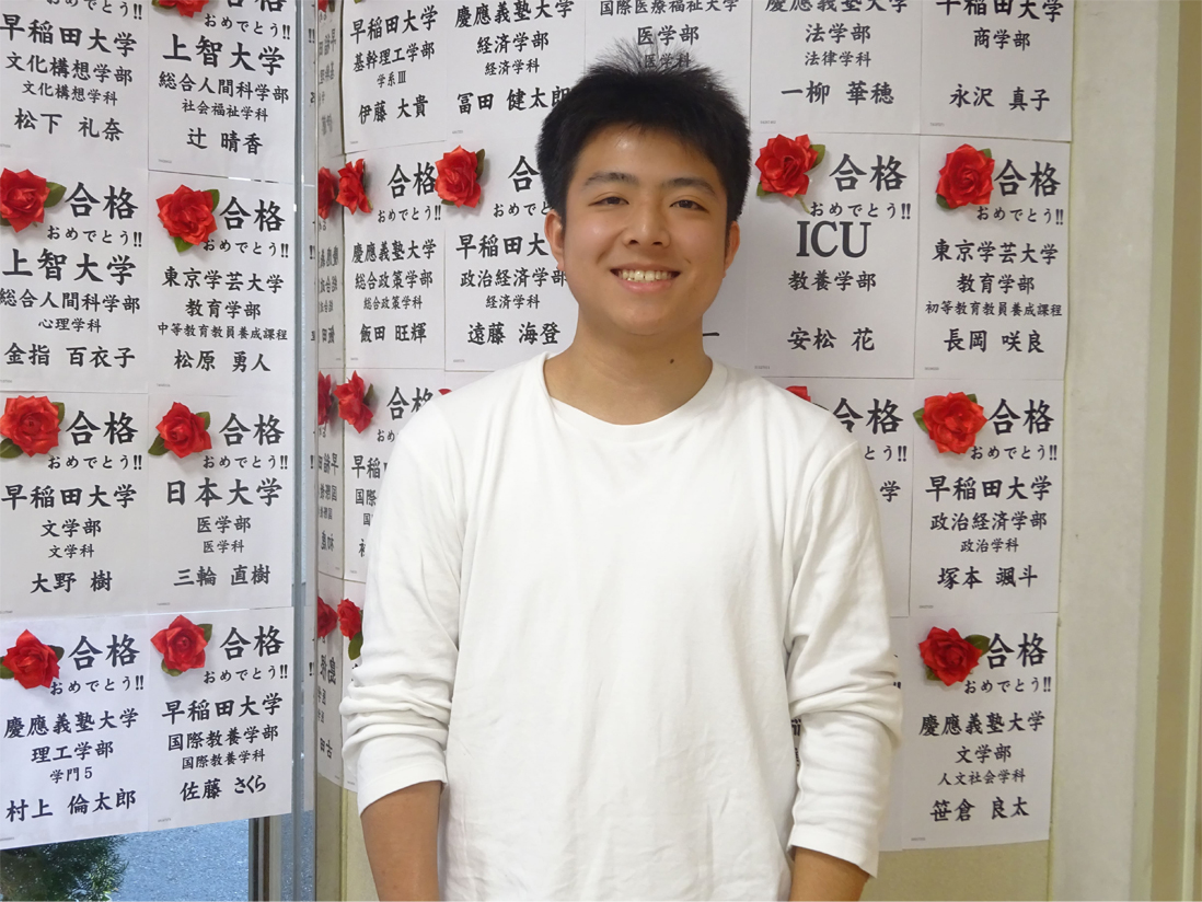 文系クラスに在籍。3年の4月に医学部に志望変更。