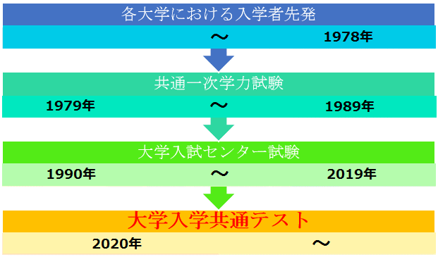 センター試験が「共通一次試験」という名前で呼ばれていたのは、今から30年以上昔のことになります。(ちょうど、みなさんの保護者の方の世代ですね)共通一次試験が現在の大学入試センター試験になったときにも、報道などではやはり「大規模な入試改革」と言われました。そして2021年1月にも、当時と同じようなことが起こるのです。