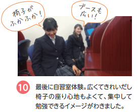 説明会や相談会が予備校・塾の校舎で行われる場合には、設備の見学をしておきましょう。受付や教室の様子など、雰囲気を見ておきます。特に自習室のチェックは重要です。自習室を設けている予備校や塾は多いのですが、「十分な座席数が確保されているか」「毎日何時から利用できるか」「席取り競争などが生じていないか」なども併せて確認しておきます。せっかく自習室があっても席取り必要があったり、利用できる時間帯が合わなかったりすると無駄になってしまいます。