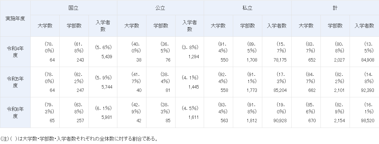 たとえば、令和6年度の私立大学の総合型選抜による入学者数は全体の19.0%。