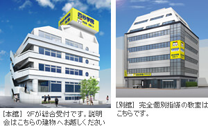 本館・別館ともに駅から近く、登下校も安心です。広々としたほっとルームや座席数も豊富な自習室など、快適な学習環境であなたの合格をサポートします。
