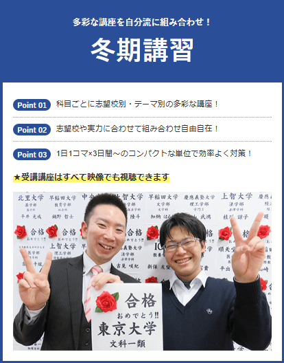 科目ごとに志望校別・テーマ別の多彩な講座が揃う冬期講習。