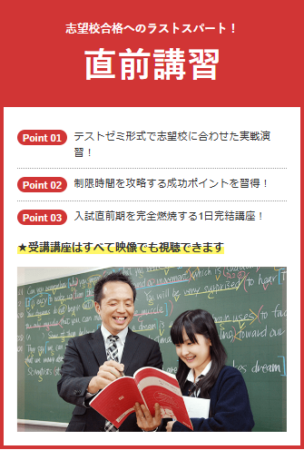 志望校合格へのラストスパートをかける、テストゼミ形式の直前講習。