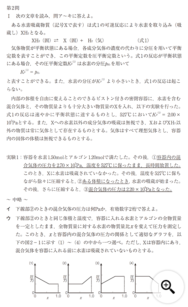 気液平衡の考えをこのように正しく理解していた人は、すっと問題に入ることができ、短時間で大問全体を処理できたでしょう。逆に、知識や計算方法をただ丸暗記していただけの人は、続く、問題ウ以降の解釈でも大きく手間取ったことでしょう。