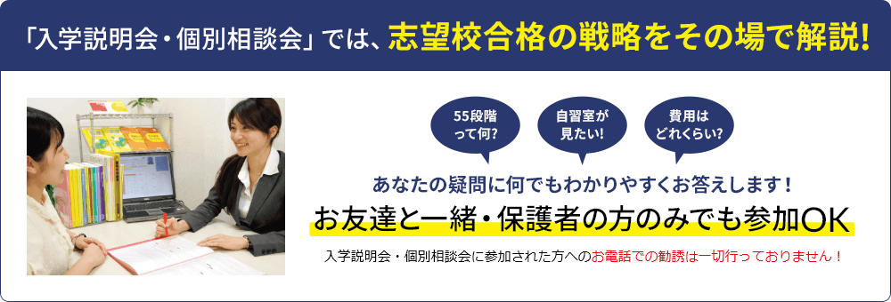 勉強を教えてくれる講師とは別に、進路指導を担当する「受験のプロ」が、志望校合格へと導きます。