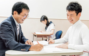 四谷学院の学習システムは生徒自らが答えを見出す過程を最も重視しています。授業においても一つの問題に対して複数の見方・解き方を積極的に紹介することで問題に対する多様な視点を育成。55段階では講師と直接答案を見ながら生徒は「自分はどう考えたのか」を話し、講師からその視点の当否や新たな視点にもとづく考え方を指導してもらうことができます。このように普段から自然な形で思考力・発想力をひろげることで、新しい学力観にもとづいた共通テストにもスムーズに対応できる力が身につきます。