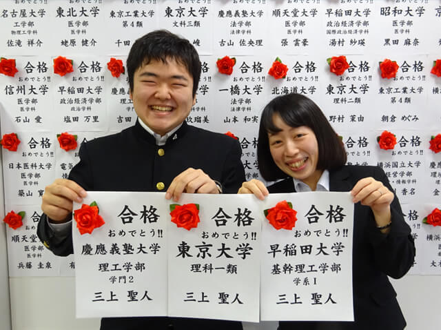 - 私は指定校推薦入試だったので、高3の6月まで定期テスト対策に多くの時間を割いていました。その中で大きな支えになったのは、私にとって世界一の学習環境である自習室と定期試験バックアップです。定期試験バックアップ期間には学校で解決しきれなかった疑問点を55段階の先生方に解決していただき、不安要素を取り除いて定期テストに臨むことができました。本当に素晴らしいシステムだと思います。