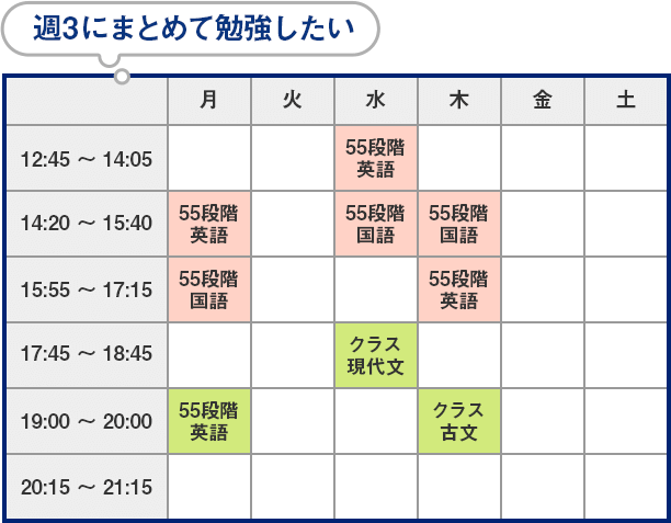 高2 私立コースの時間割例