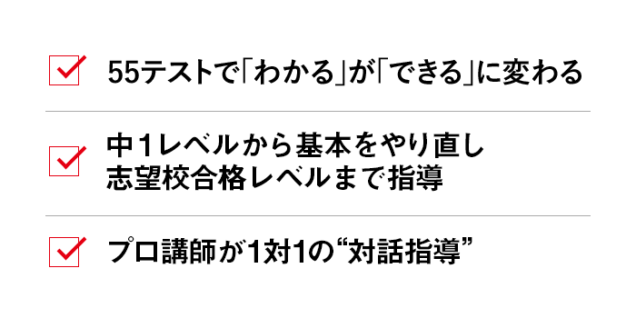 55テストで見つかったあなたの「学力の穴」を効率良く埋めていきます。