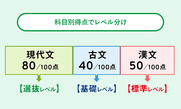 科目別にレベルが分かれるので、例えば現代文は選抜レベル、古文は基礎レベル、漢文は標準レベルというきめ細やかさ。