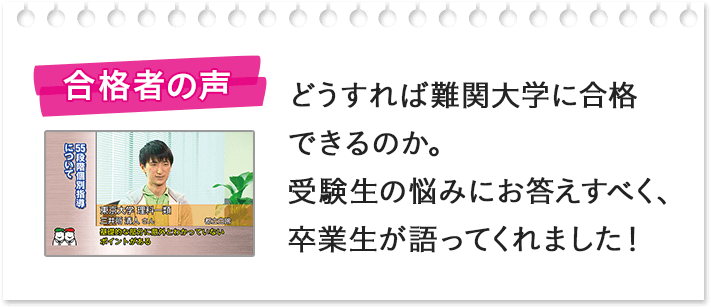 百聞は一見にしかず!難関大学に合格した先輩の声を多数収録!