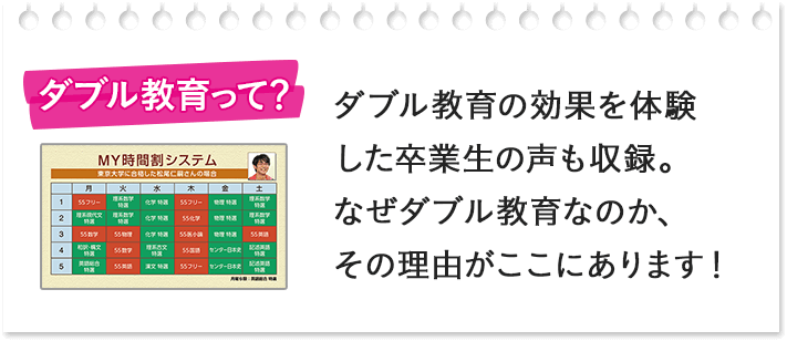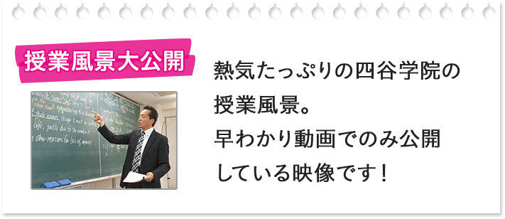 この映像では、四谷学院の卒業生たちが、四谷学院だけの学習システムである「ダブル教育」について詳しく語っています。四谷学院の特長や授業の雰囲気がダイジェストで紹介されています。