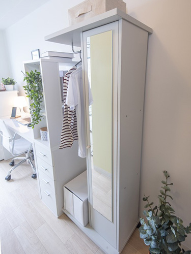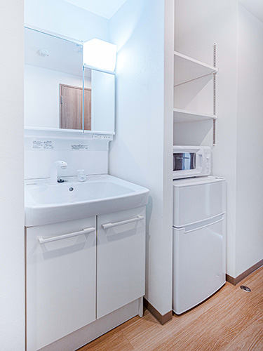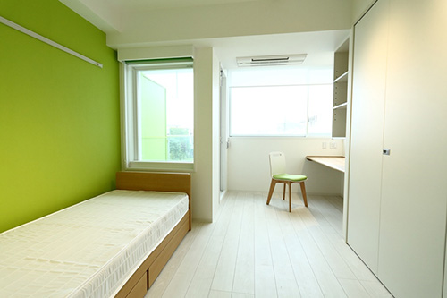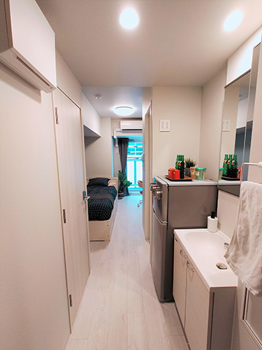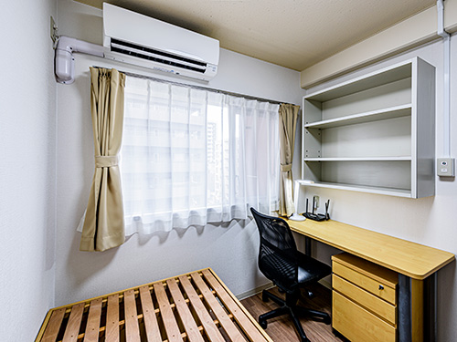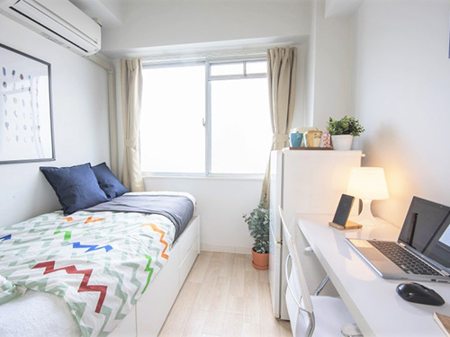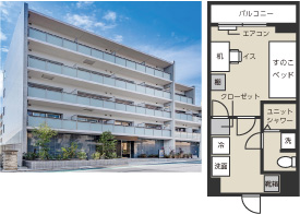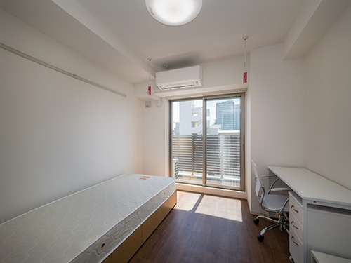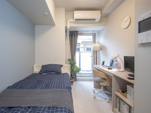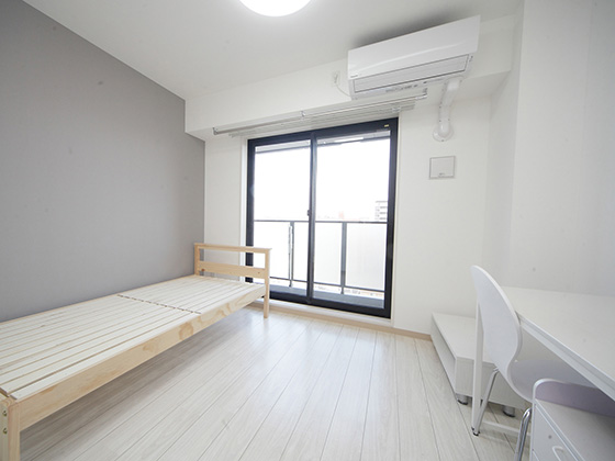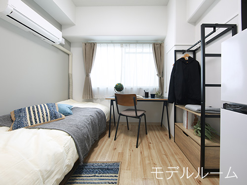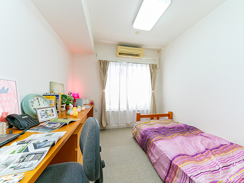 | 設備等 | バストイレセパレート、インターネット(無料)、エアコン、バルコニー、洗濯機、冷蔵庫、温水洗浄便座、洗面型ミニキッチン、ベッド、デスク、チェア、居室照明、レースカーテン、ドレープカーテン、クローゼット、シューズケース |