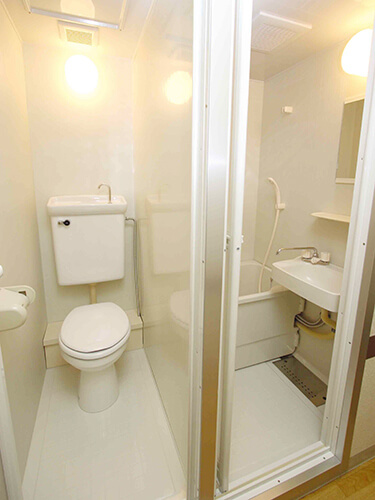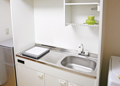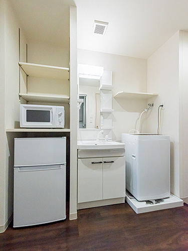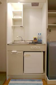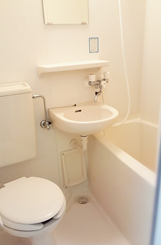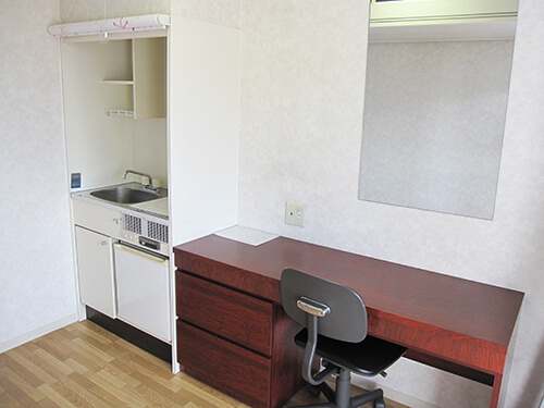 | 設備等 | エアコン、照明器具、ミニキッチン、冷蔵庫、テレビ、ベット、机、イス、収納棚、鏡、ハンガーパイプ、ユニットバス |