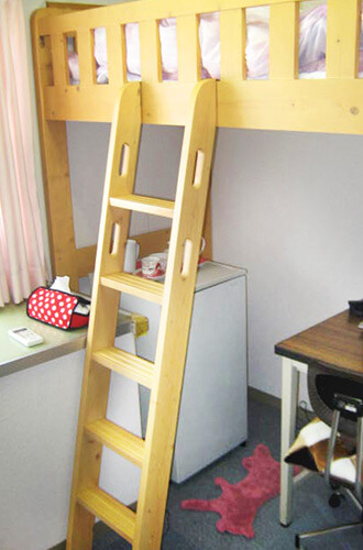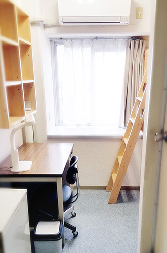 | 設備等 | 机・イス・電気スタンド・本棚・IP電話・ロフトベッド・クローゼット・カーテン・照明器具・エアコン・冷蔵庫・ユニットバス・インターネット接続システム |