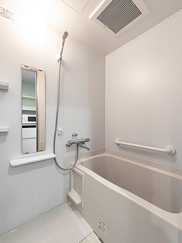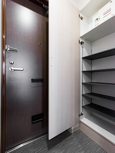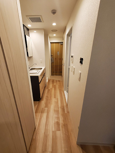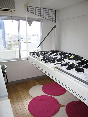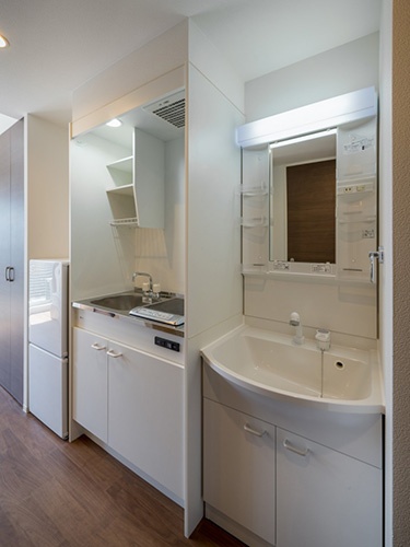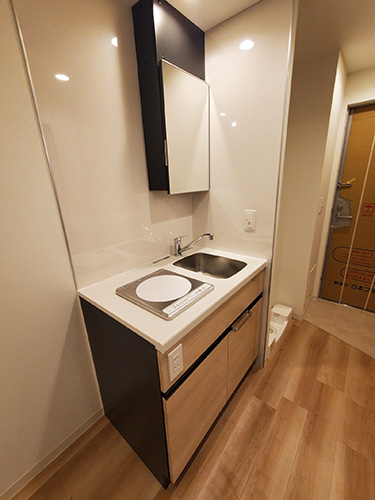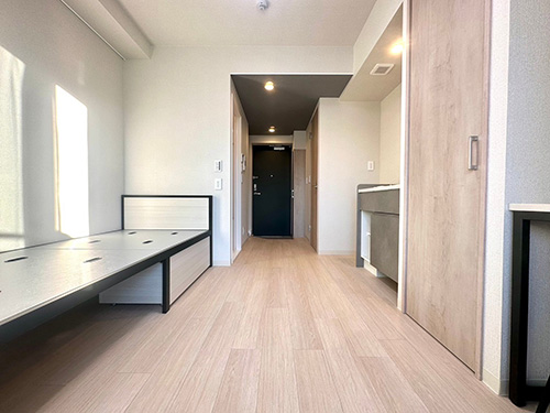 | 設備等 | 照明器具、エアコン、昇降式ベッド、机、イス、冷蔵庫、鏡、多目的収納、シューズ棚、オートロック式ドア、照明タブレットスイッチ、キッチン、バス・トイレ3点ユニット |