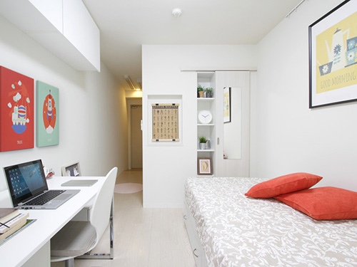 | 設備等 | エアコン、TVモニター付きインターホン、3点ユニット、高速光インターネット、収納、バルコニー、照明器具 、2ドア冷蔵庫、ベット、デスク、チェア、チェスト、TV台 |