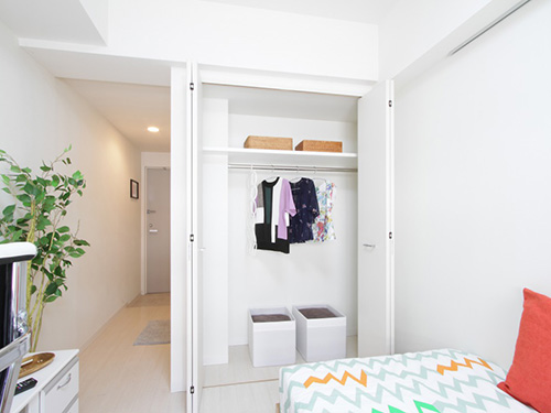 | 設備等 | オートロック、バストイレ別、独立洗面化粧台、モニターホン、エアコン、冷蔵庫、洗濯機、ベッド、机、イス、照明器具、カーテン、クローゼット |