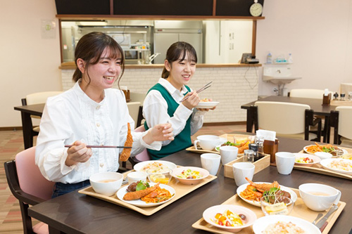 また、ご飯の時間が決まっているので必然的に早く起き、自然と生活リズムができました。食堂の調理員さんが気にかけてくださることも嬉しかったし、一人暮らしだったら野菜不足や自分で作れる品数の少なさに悩み、間違いなく食生活が乱れていたと思います。