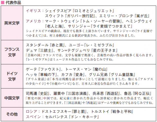 主な分野として、英米文学・フランス文学・ドイツ文学・中国文学などがあります。各分野の代表作品を見てみましょう。