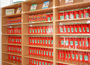 情報コーナーには赤本がズラリと並んでいるので、大量の過去問をチェックすることが可能です。閲覧はもちろん、校舎内での貸し出しも行っています。