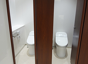 千種校のトイレはホテルのような上質な空間です。ウォシュレットや温水暖房便座完備で快適に利用できます。毎日通いたい空間になるように、校舎の細部にまで四谷学院はこだわっています。