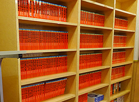 赤本を豊富に取り揃えています。受付で貸し出しも行っているのでお気軽にお声がけください。