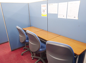 1対1または1対2で指導が受けられる完全個別指導コースのブースです。