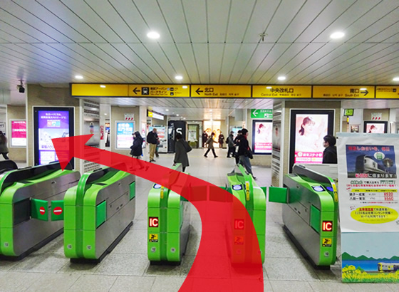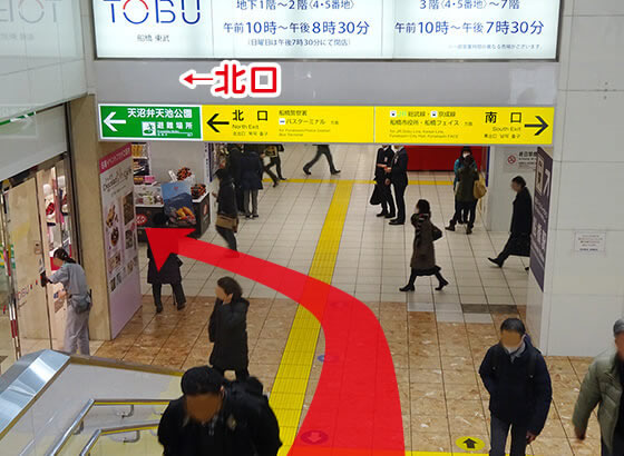 大きな階段を降りて、左の北口方面へ進みます。