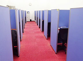 完全個別指導コースで使用するブースです。1:1や1:2で特に距離の近い指導を行いますので、苦手科目の克服は勿論、特殊な過去問の対策や小論文対策等で利用されると、より効果的です。