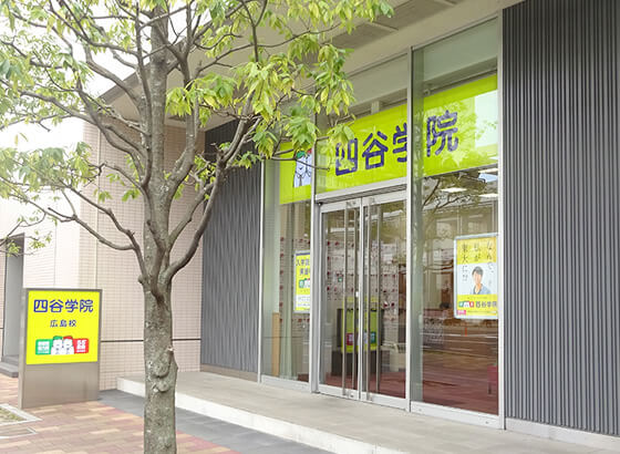 JR広島駅の北口(新幹線口)を出るとロータリー右側にアクティブインターシティというビルがあります。その1Fが四谷学院広島校です。