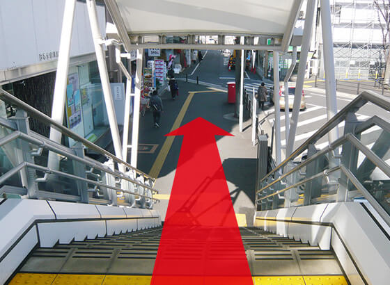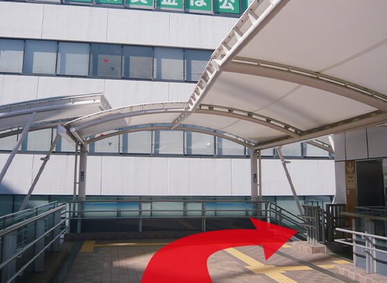 改札を出たら西口側デッキを直進します。