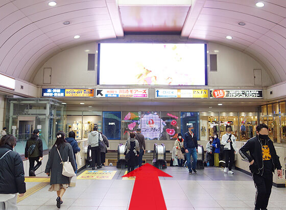 京急川崎駅の中央口方向の改札を出て、正面右手に進みます。