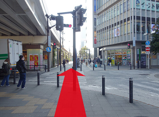 横断歩道を渡り、アゼリア地下街への入口を左折します。