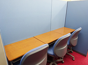 1対1、または1対2での指導を行う、個別指導を実施するブースです。苦手科目を集中的に強化したり、学校推薦・総合型選抜・一般入試のために小論文の対策をしたり、一人ひとりの状況に応じた授業内容で指導を受けることができます。予備校コースの授業と併せて活用することも可能です。