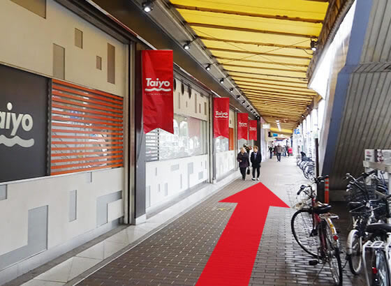 アーケードに沿って直進します(左手にカラオケがあります)。